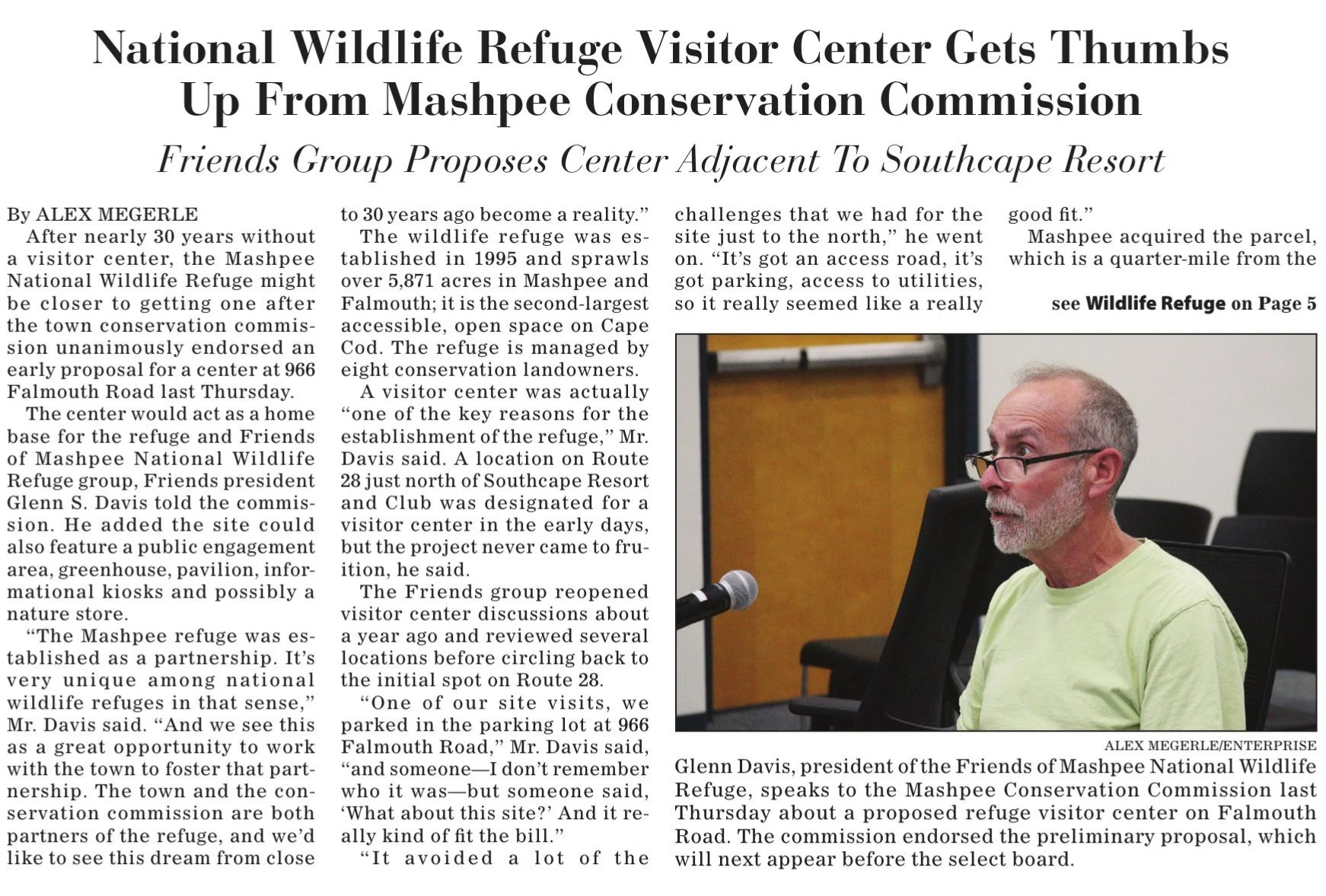 From the Mashpee Enterprise, “After nearly 30 years without a visitor center, the Mashpee National Wildlife Refuge might be closer to getting one after the town conservation commission unanimously endorsed …