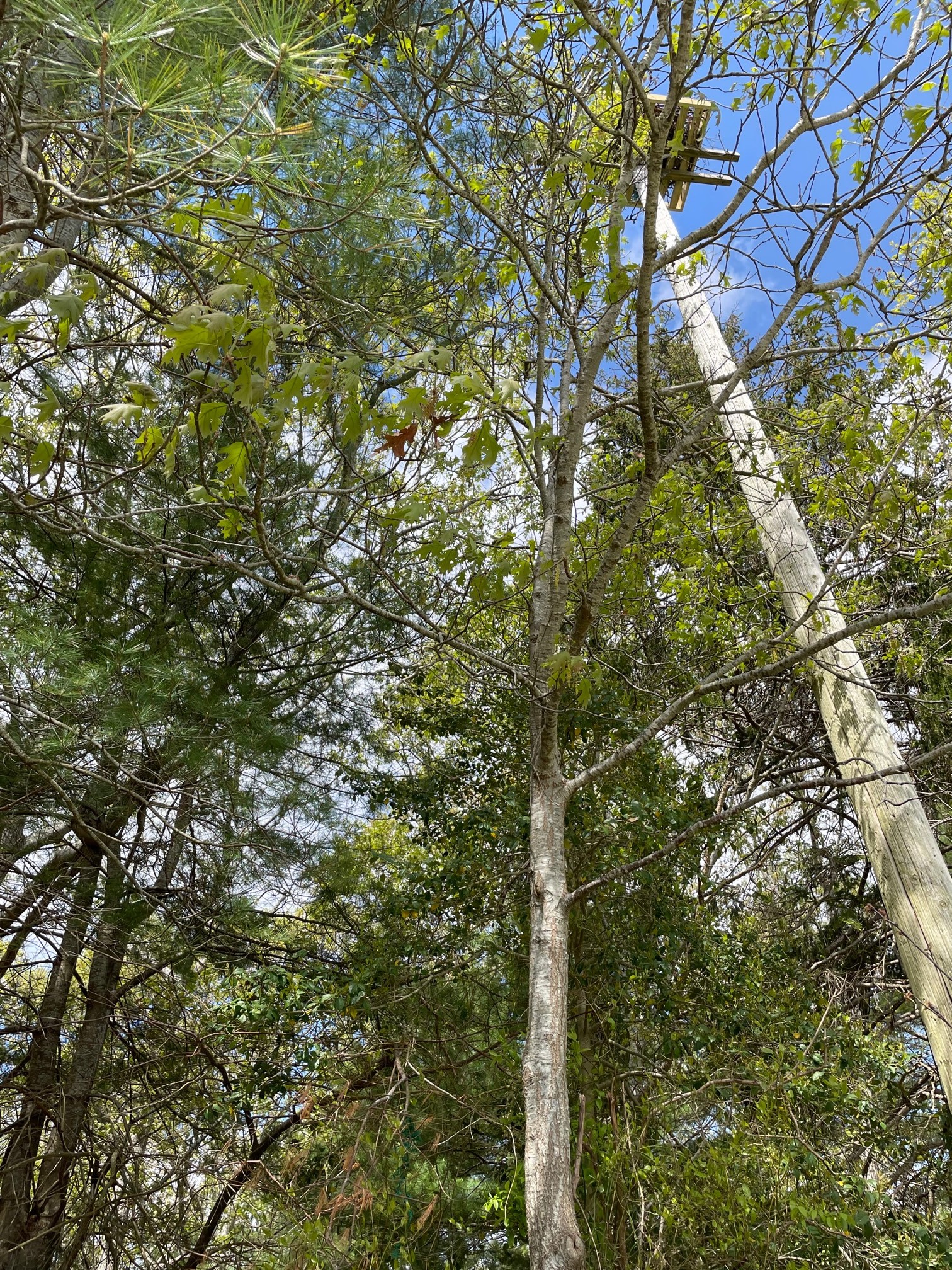 Hi Joan. That would be wonderful for you to write an article – thank you! Great question about trees. The nest platform is at the edge of a wooded area, with a mix of pitch pines, white pines, white oaks and spruce trees. There’s also a large beech tree close by and some smaller hollies underneath the platform. Feel free to contact me directly to help with any other questions.