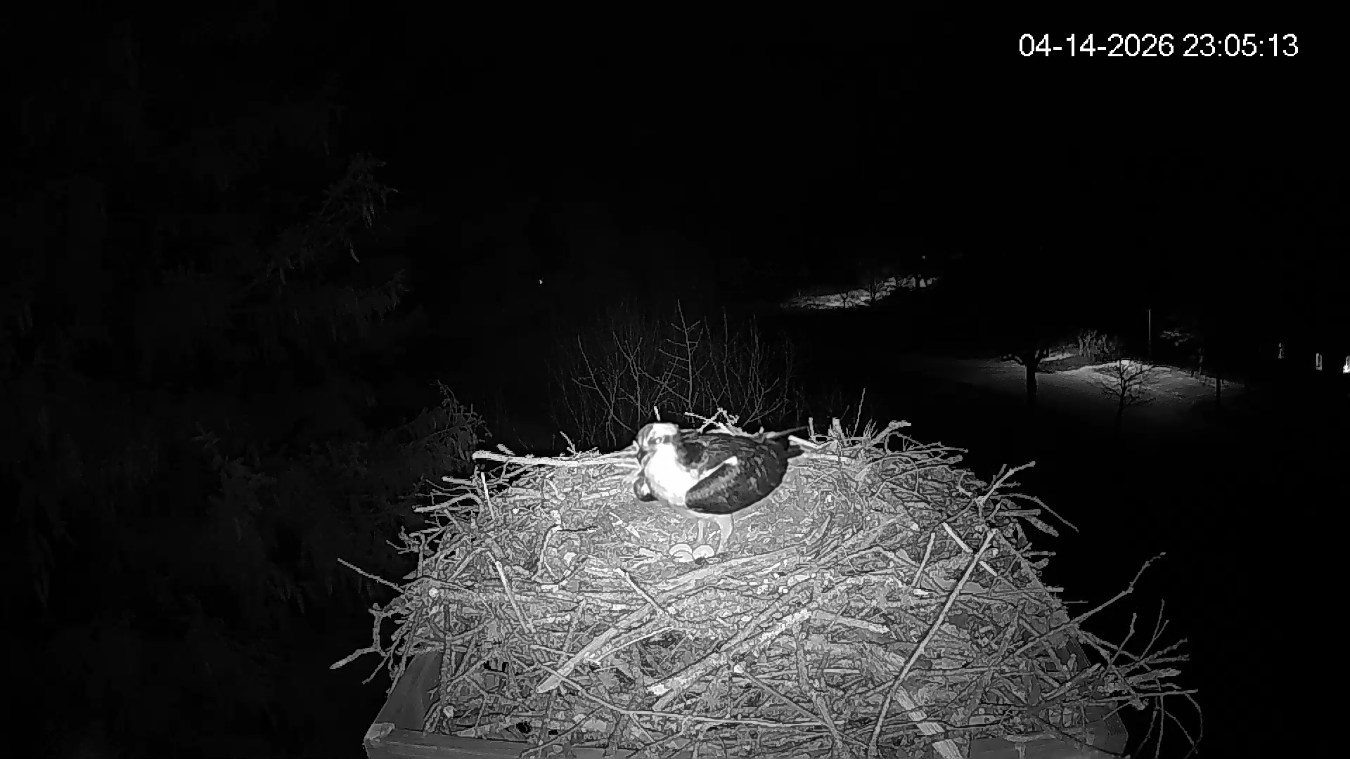 The 3 warm eggs are clearly visible at night captured by the infra-red camera. They can be harder to see during the day given their camouflage. Also the nest bowl seems deeper this year and material in the foreground often obscures a clear view. Will there be a 4th?