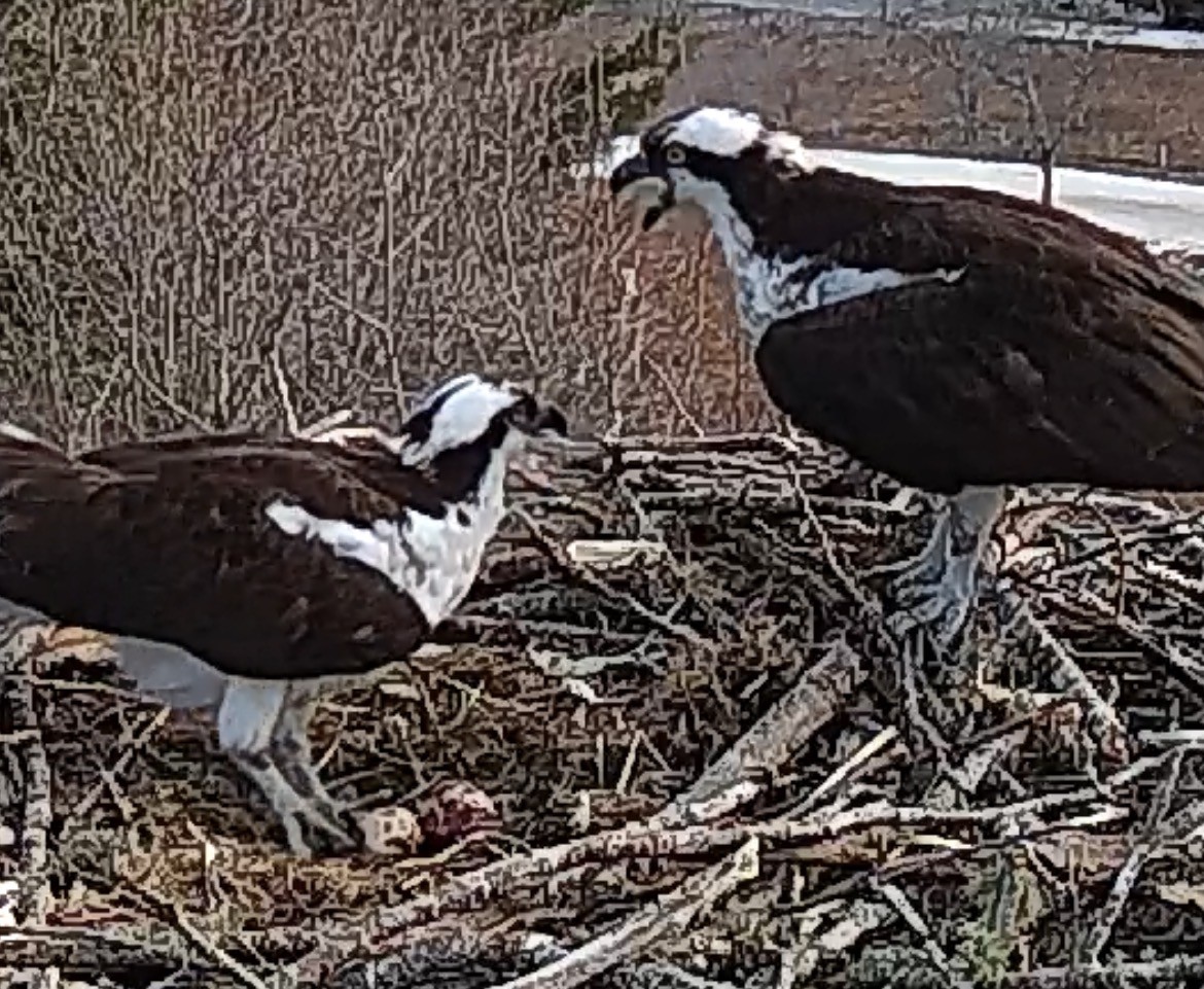 do Osprey ever switch places on the nest? I don’t see much food being brought to her. But maybe my timing is off and I just miss it.